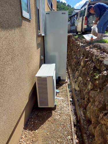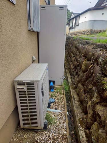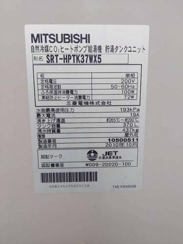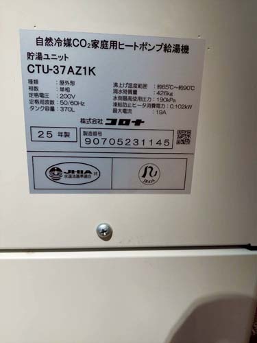 大崎市古川 三菱電機自然冷媒CO2ヒートポンプ給湯機 貯湯タンクユニットSRT-HPTK37WX5→コロナ自然冷媒CO2家庭用ヒートポンプ給湯機 貯湯ユニット CTU-37AZ1K エコキュート交換工事