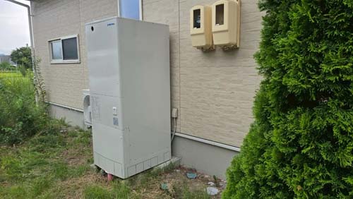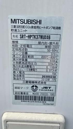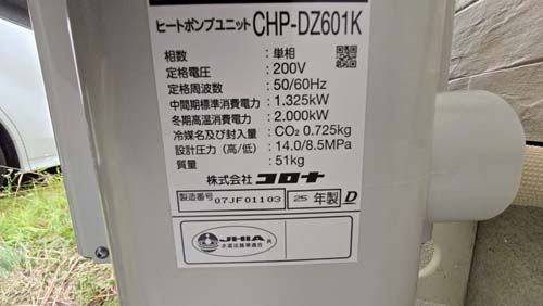 気仙沼市田中 三菱電機自然冷媒CO2家庭用ヒートポンプ給湯機 貯湯ユニットSRT-HPTK37WUDX6→コロナ自然冷媒CO2家庭用ヒートポンプ給湯機 ヒートポンプユニットCHP-DZ601K、貯湯ユニットCTU-46AZ1K エコキュート交換工事